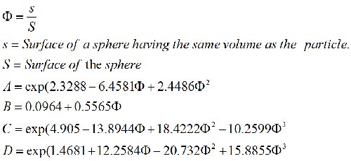 | Where ψ is the sphericity of the particle. |