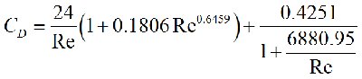 | CD = 18.5/Rep0.6 | 0.5 < Rep < 500 | Intermediate |