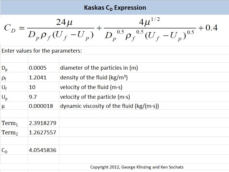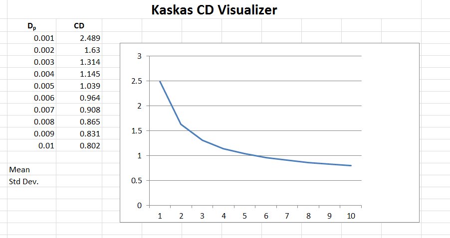 The image below shows a screenshot of a spreadsheet that calculates the Kaskas coefficient of drag.