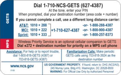 | Qualified recipients receive a GETS card that contains all of the pertinent information for system use. Both sides of a sample card are shown below. | ||||||||||||||||||||||||