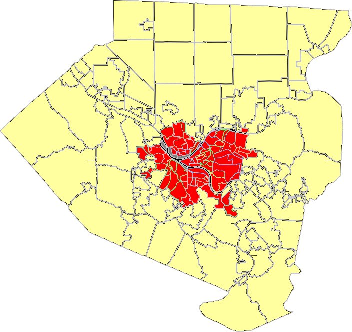 | The City of Pittsburgh (pittsburghpa.gov) is at the geographic center of Allegheny County. Within Pittsburgh, the