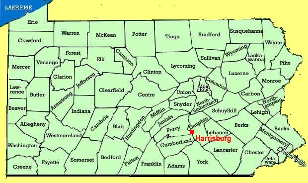 | Pennsylvania is comprised of 67 counties and 2562 municipalities. See www.pamunicipalitiesinfo.com. The state capital, Harrisburg, is located in Dauphin County in the southeastern part of the state. | |  |